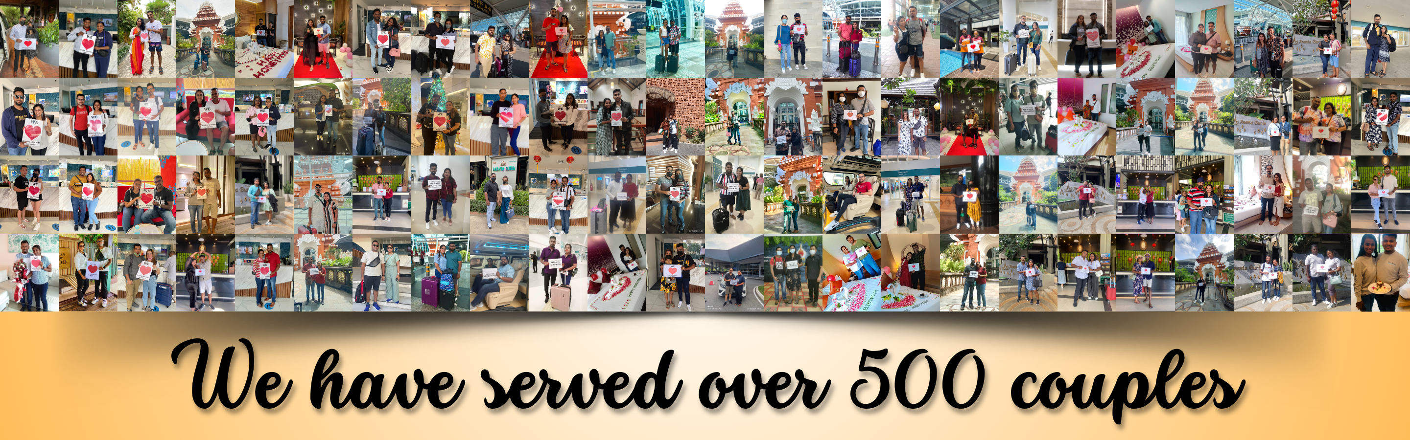 We are thrilled to announce that we have had the honor of serving over 500 couples! This milestone is a testament to our dedication, commitment, and passion for creating memorable experiences. Each couple has entrusted us with their special moments, and we are deeply grateful for the opportunity to be a part of their journey. As we celebrate this achievement, we remain committed to providing exceptional service and creating lasting memories for many more couples in the future. Thank you for allowing us to be part of your story!